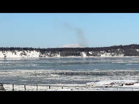 The camera then pans westward to capture spectacular winter views of all four of the most impressive mountains that can be seen looking northward from Anchorage Alaska’s Cook Inlet shore.