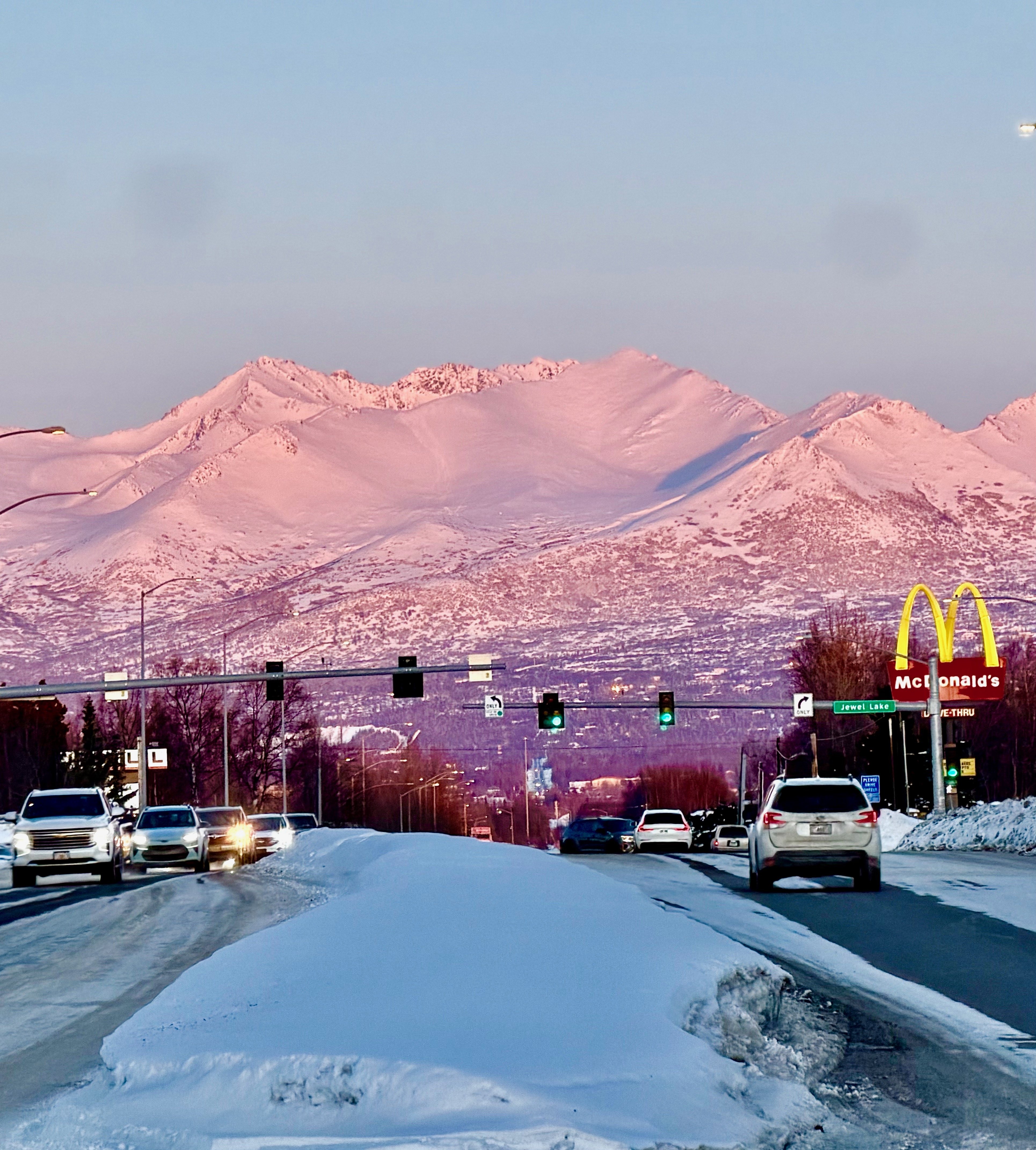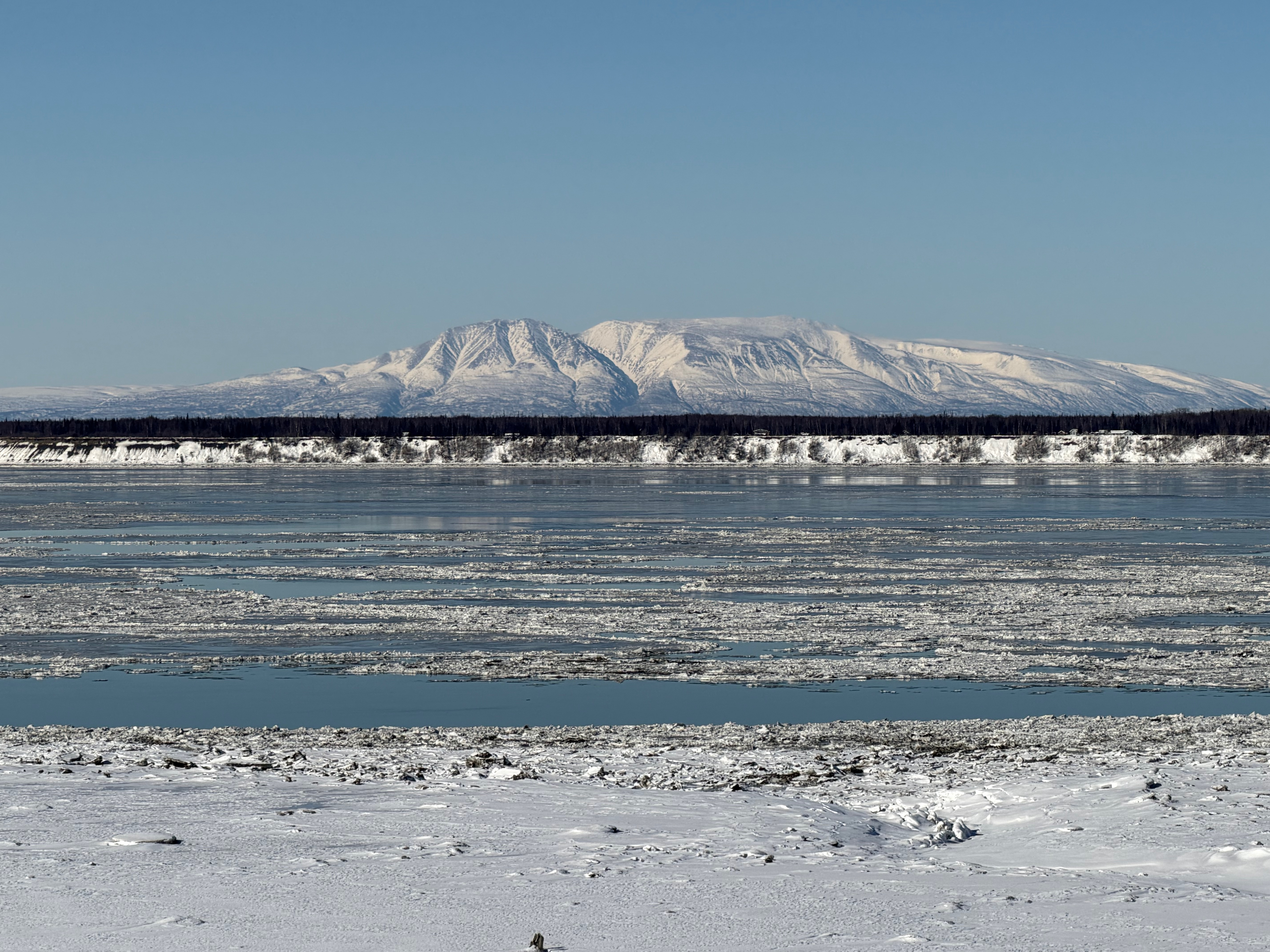 Mt Susitna appears as an Indian Maiden laying on her back with hair flowing westward and accordingly is commonly known as “Sleeping Lady.”