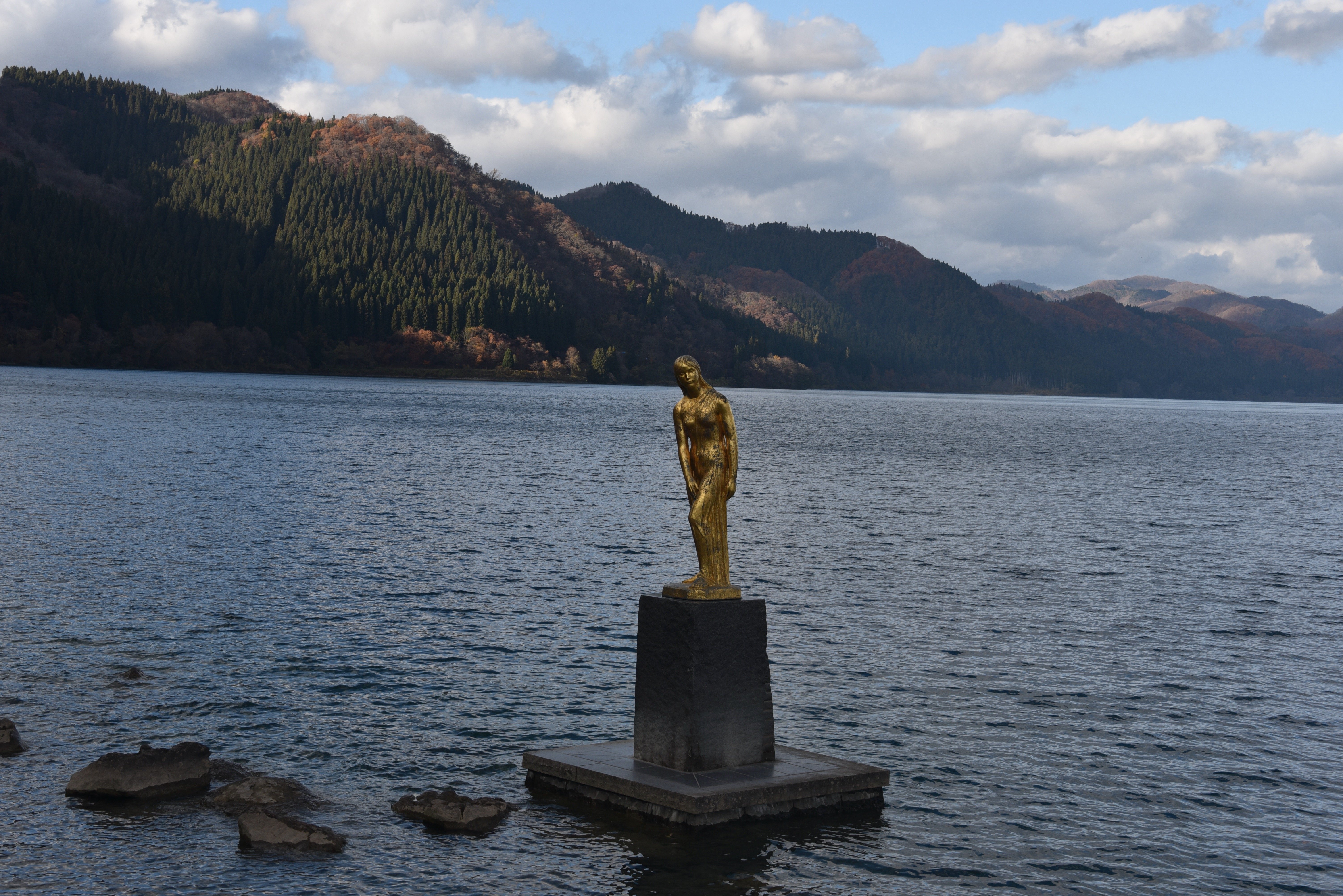Another Lake to which we traveled was Lake Tazawa located in Akita Japan. It is the deepest lake in Japan and is known for its golden maiden statue of Tatsuko who per legend was turned into a dragon: