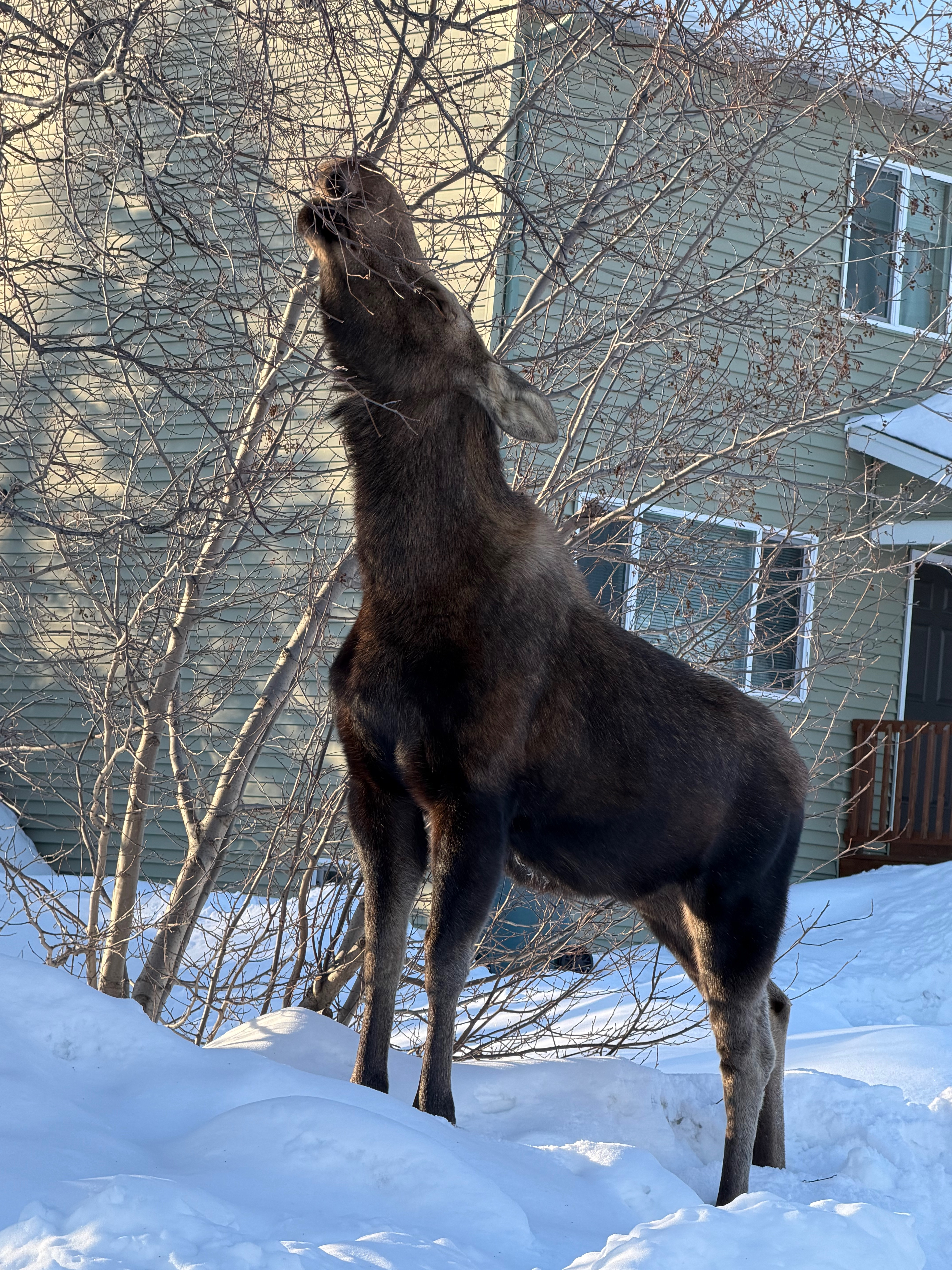 Despite watching hundreds of Moose and their behaviors over many decades, this is the first time I actually saw a moose eat snow - and fortuitously I was able to capture it on video