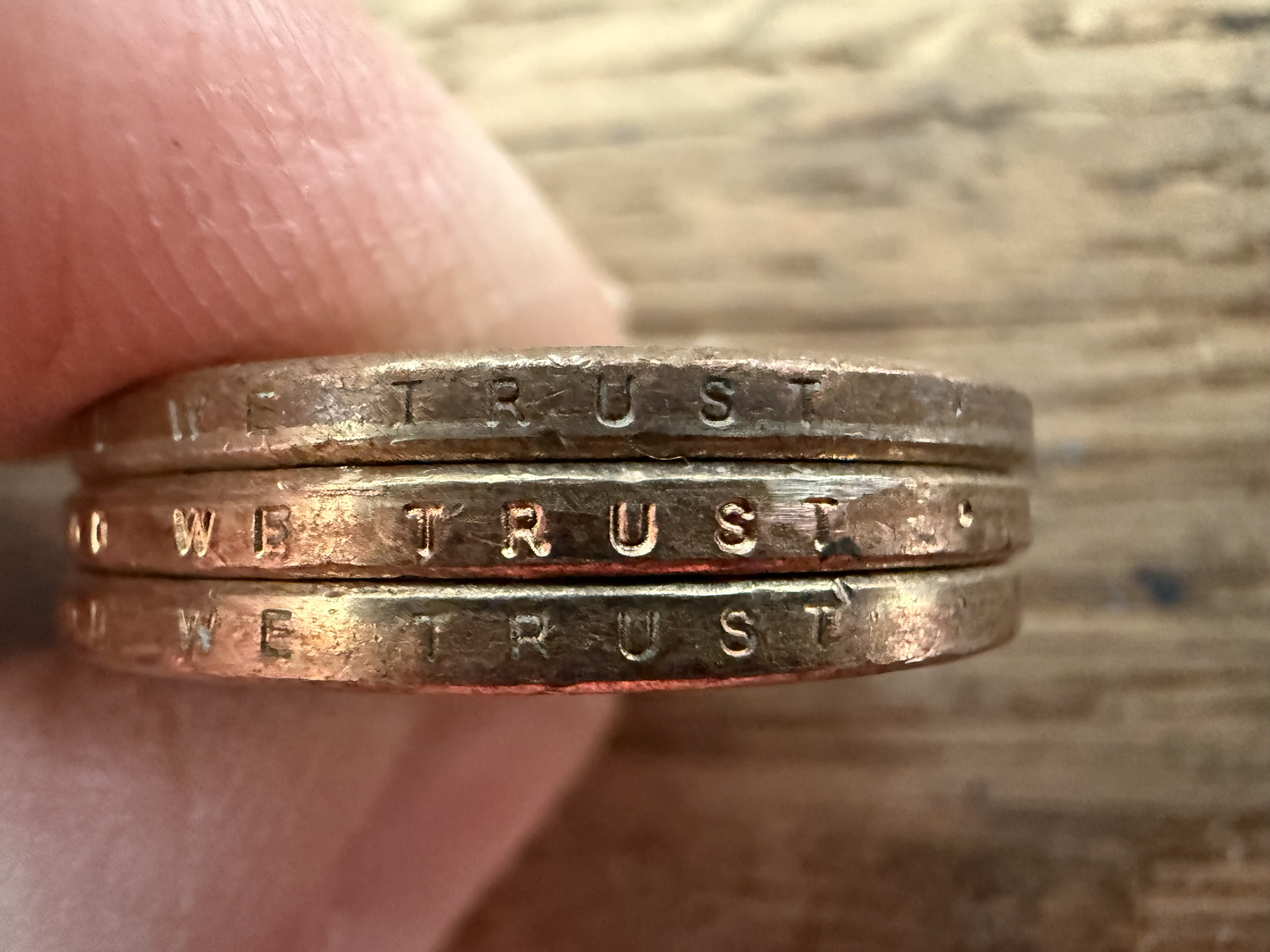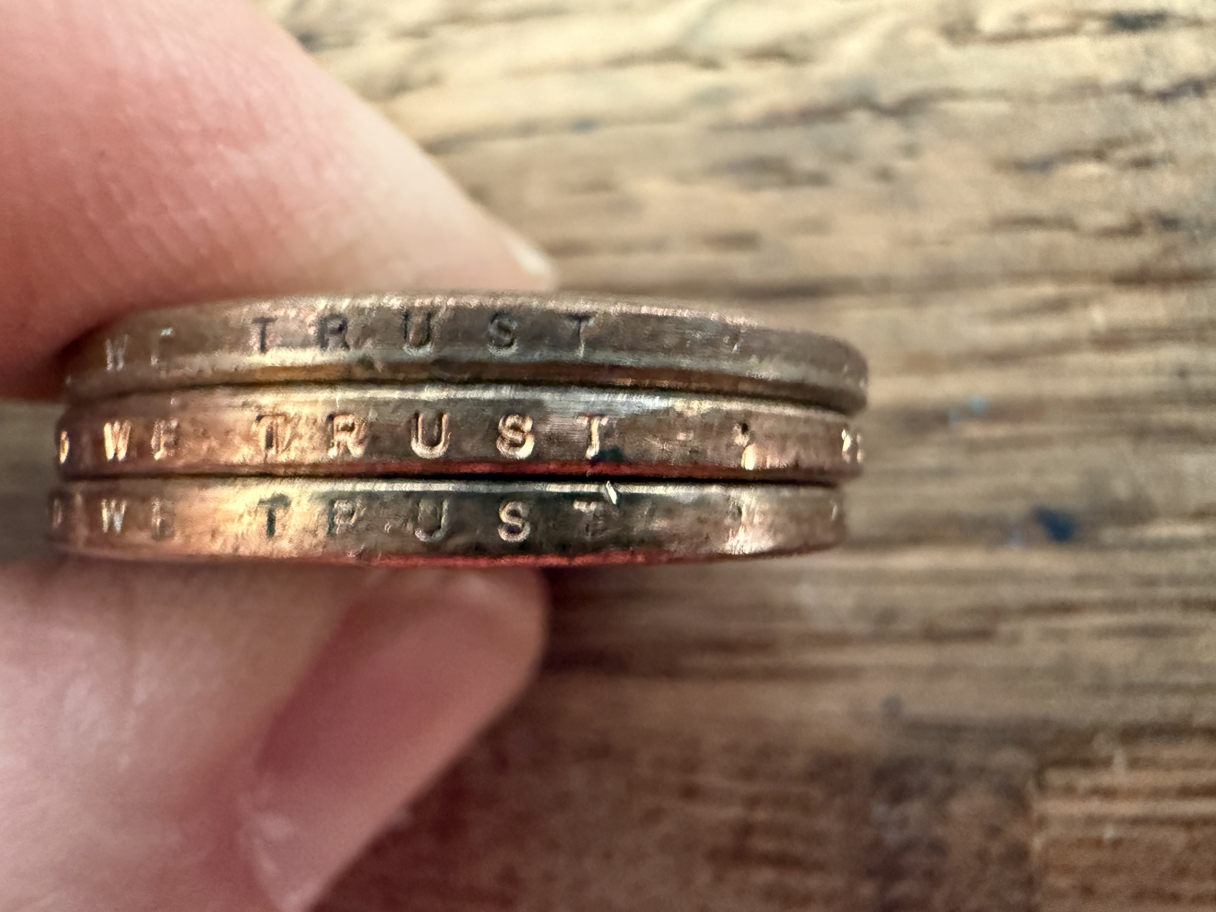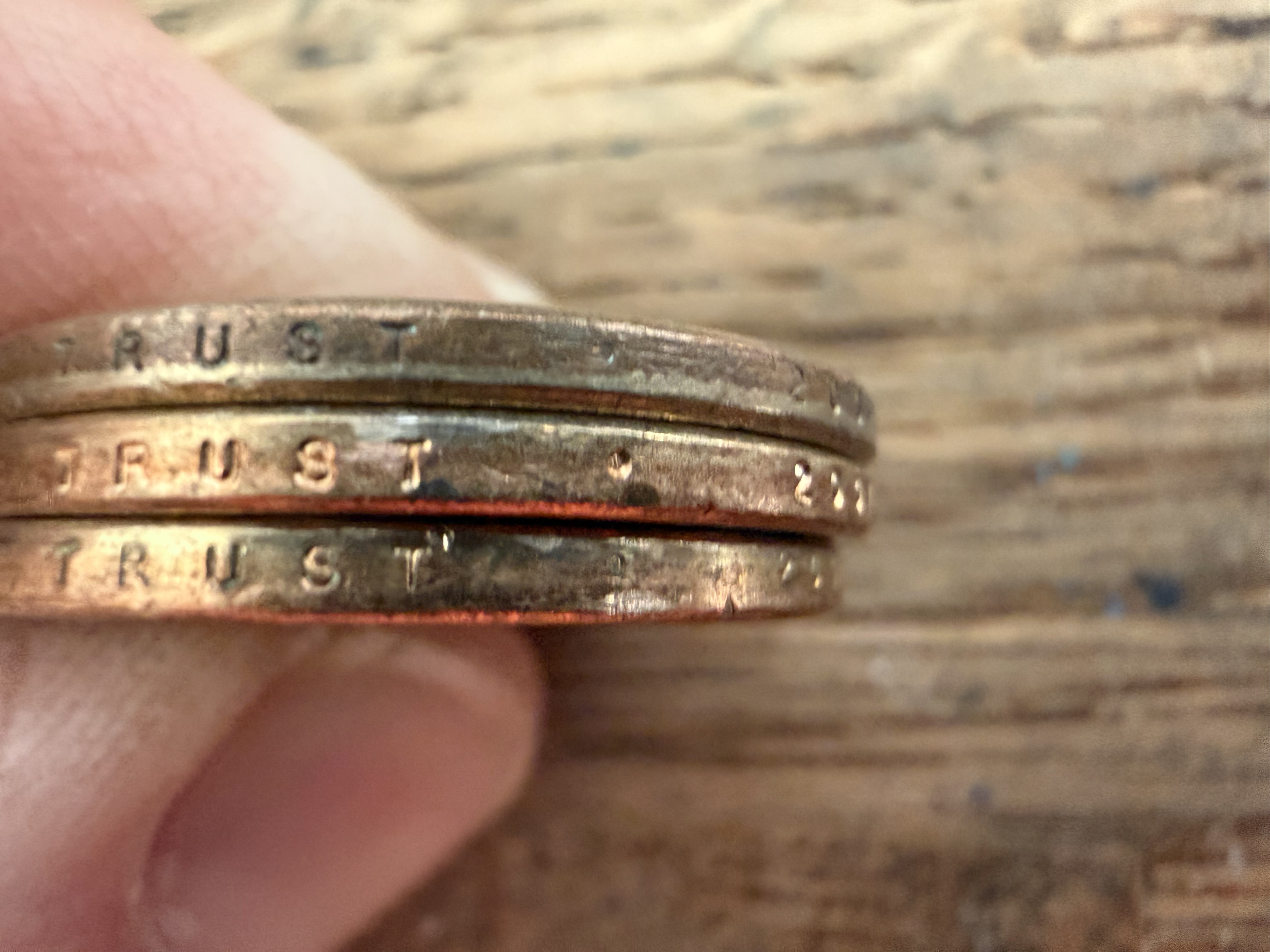 It looks like a double die error except it’s on the edge of the coin. Is it just me or can anyone else see how the letters look doubled? Not 1955 C doubled or 1969S doubled. Several letters look double the size they are supposed to be. On some of the letters, I see where it was struck a 2nd time but slightly offset. If I’m wrong then I’m wrong, that’s fine.
