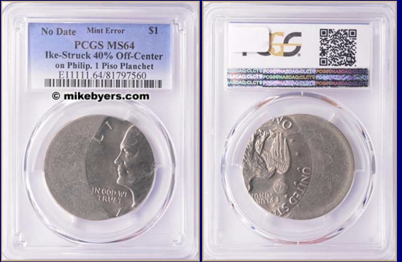 I know of only (5) Ike Dollars struck off center on Philippine 1 Piso planchets. Here is one of them: