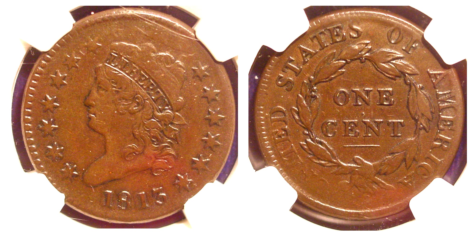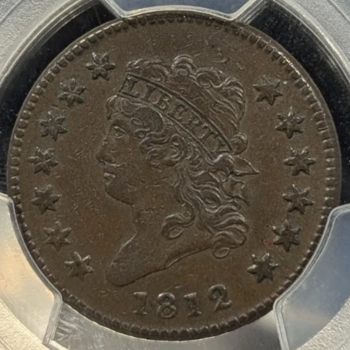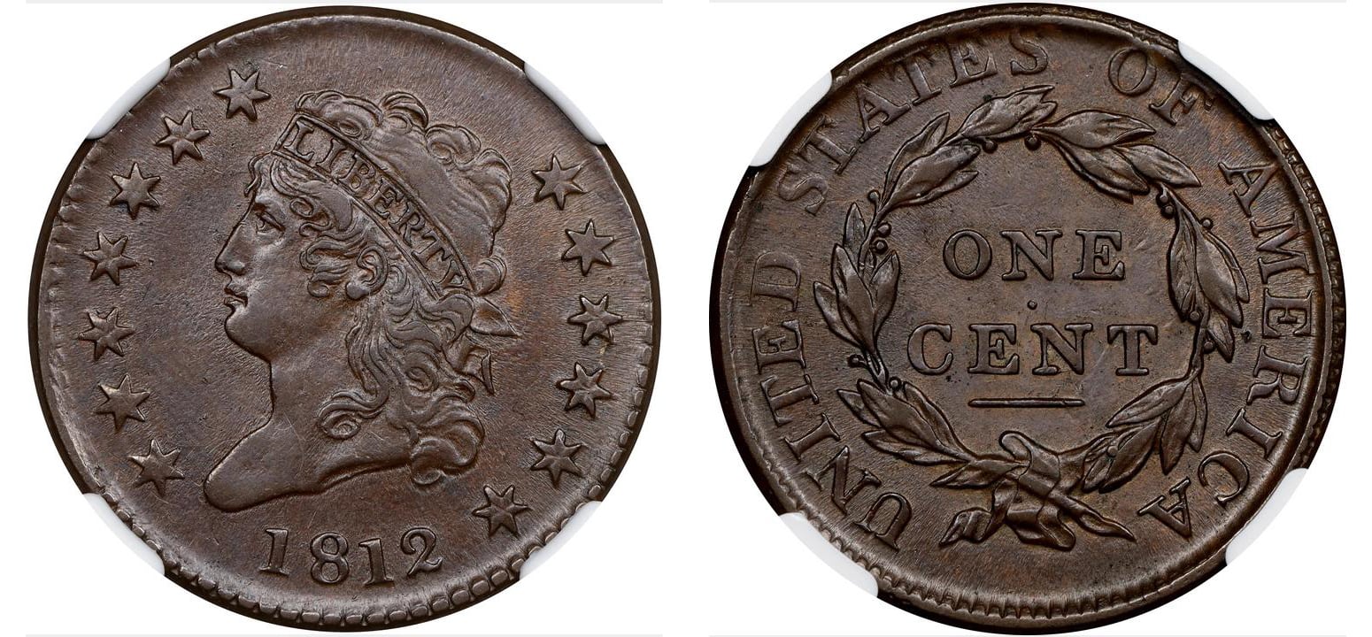 This is the 1812 I placed in my cent date date set. I paid a premium for this because it was so nice, and it is now my type coin as well. This is graded AU-58.