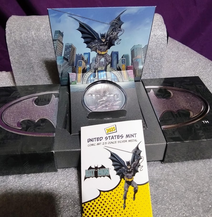 Note the damage to the Batman box - this is because the medal easily loosens from the flimsy holder, and bounces all around during shipping. 90% of my 2.5 medal OGP is damaged due to this weak support apparatus.