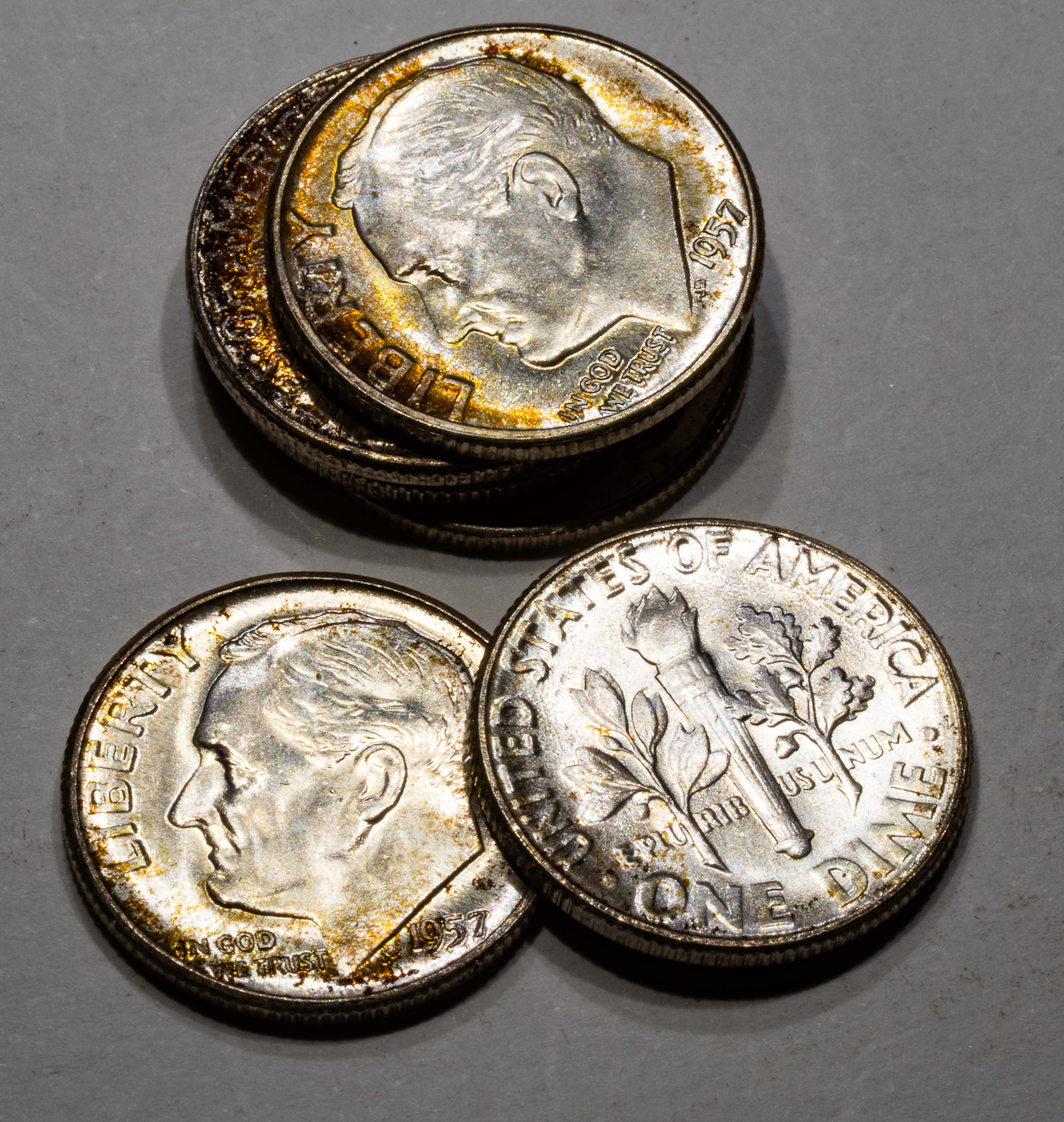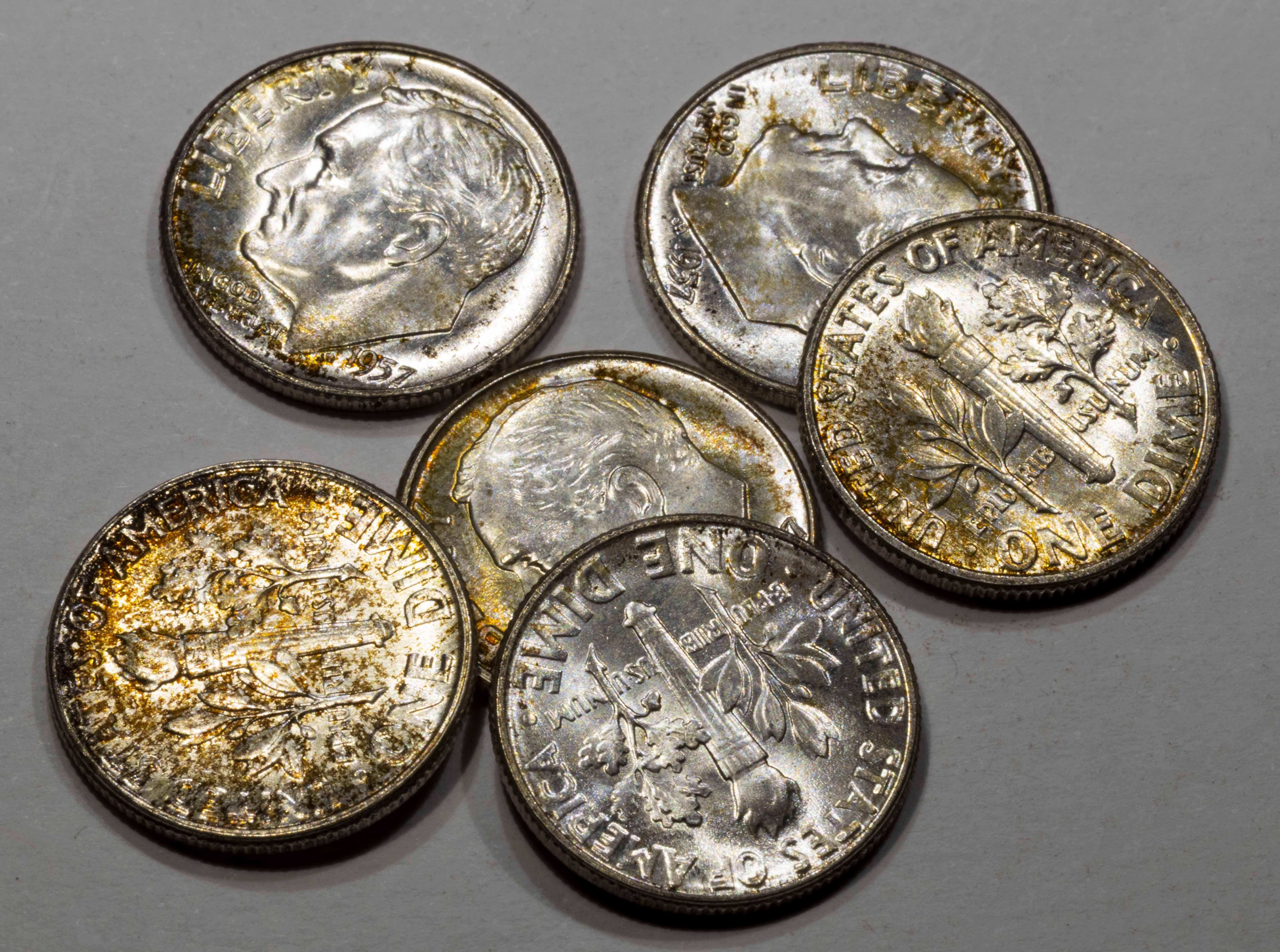 It's been a while since I've found anything of note, so imagine my surprise when not one, not two, but six brilliant UNC 1957 dimes showed up today among a bunch of other random change.