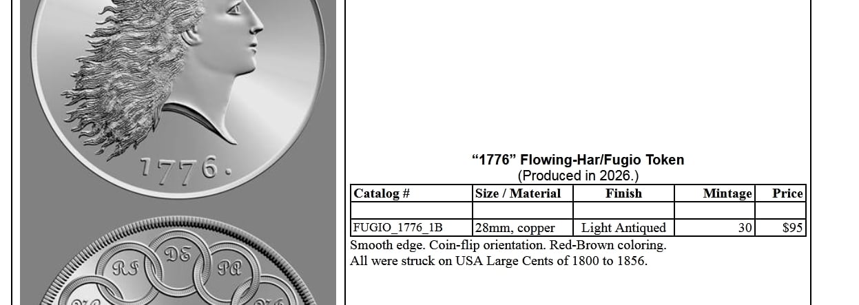 I pondered your heads up post and decided to add the 1776. large cent overstrike with 13 States Chain links reverse. I went thru the handful of the new offers and chose it. I could not find anything about it on production blog however I think it's a very nice & thought provoking 1776 dated fantasy with Chain Reverse.