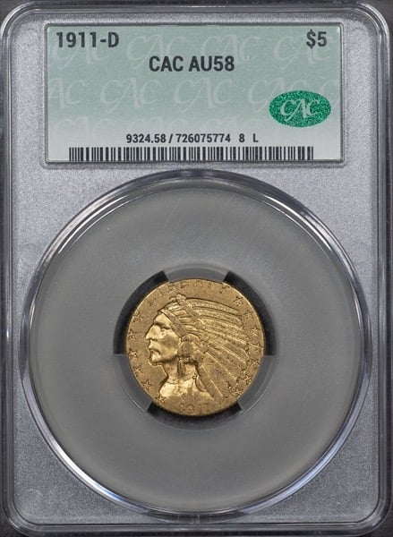 1911-D AU-58 with some color, strong D, and a "+".